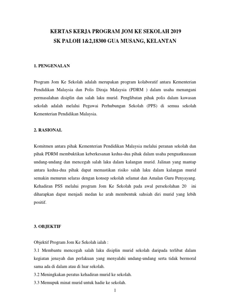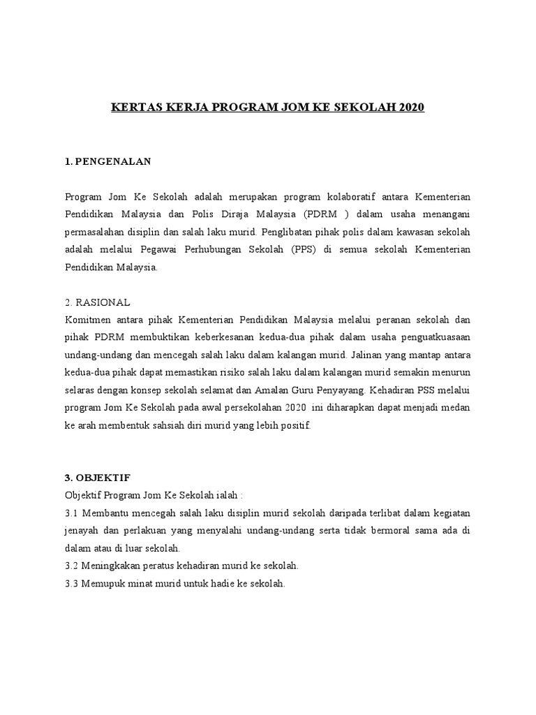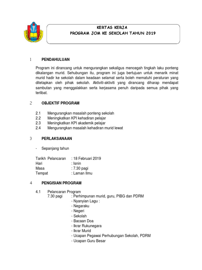 Kertas Kerja Program Jom Ke Sekolah Pdf